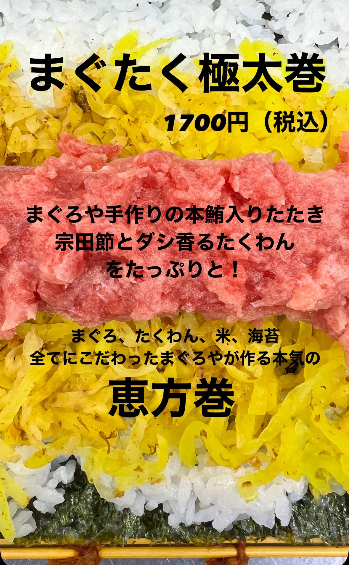 まぐろはもちろんのこと、米は米屋こだわりの美味しい国産米をまぐろに合う酢飯にし、海苔も1級品の高級海苔を使用。全てにこだわり、他にはできないまぐろ屋だからこそできる本気の恵方巻をお届けします!